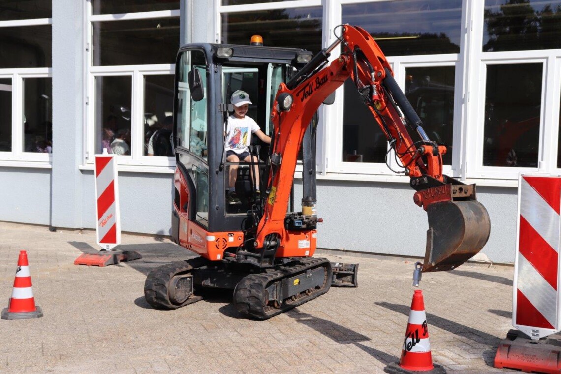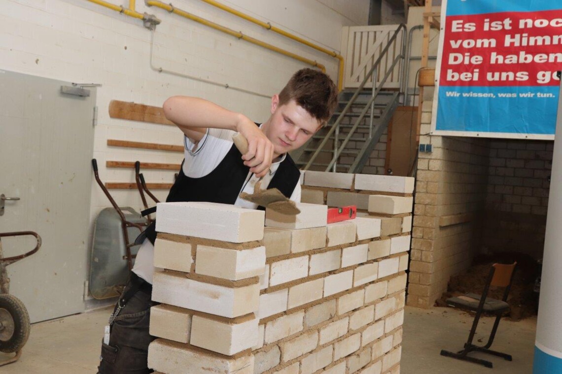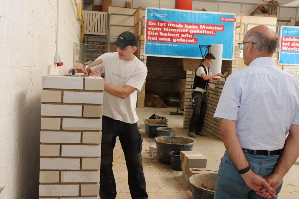 Die Lehrwerksmeister, Innungsobermeister, Auszubildenden und Lehrer der Berufsschulen stellten ein buntes Programm auf die Beine. In der Bauhalle erklärte Azubi Calvin Janßen von der Firma Janssen Hochbau in Uplengen eifrig, wie ein Fenstersturz gemauert wird. Davor durfte an einem Bagger der Bauhandwerker-Innung Aurich-Emden-Norden Präzisionsarbeit getestet werden. Mit Alarmsignalen machte die Innung für Elektro- und Informationstechnik in Ostfriesland auf sich aufmerksam. Aiko Boelen von der Sandersfeld Sicherheitstechnik GmbH in Leer erklärte an einer Demonstrationswand, wie das Elektrohandwerk für Sicherheit in Ostfriesland sorgt. Gleich daneben baute der angehende Elektroniker Tilo Janßen, der seine Lehre bei Elektroinstallateurmeister Ulrich Müller in Krummhörn absolviert, eine Steuerungsanlage für eine Papierpresse auf.
