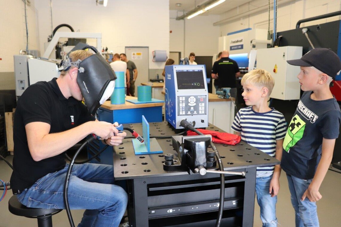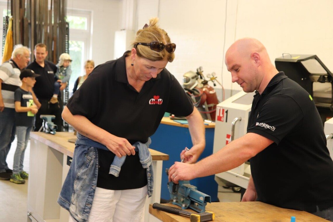 Sägen wie zu Großvaters Zeiten, mit dem Schweißgerät oder der Lackierpistole in virtuelle Welten abtauchen oder doch an den modernsten Maschinen Metall stanzen: Von Klein bis Groß durfte jeder in die Werkstätten hineinschnuppern und mitanpacken. Ob Tischlerei, Bauhalle, Metall- und Schweißtechnik, Kfz-Technik, Elektro, Sanitär-, Heizungs- und Klimatechnik oder Friseursalon – überall luden Azubis und Meister zu Mitmachaktionen ein.