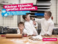 Der Kita-Wettbewerb „Kleine Hände, große Zukunft“ geht in die 13. Runde und lädt Kitas und Handwerksbetriebe erneut ein, gemeinsam das Handwerk für kleine Nachwuchstalente erlebbar zu machen. Herzstück ist ein Betriebsbesuch, bei dem die Kinder die Chance haben, kreativ und spielerisch in die Welt des Handwerks einzutauchen. Anschließend gestalten die Kinder gemeinsam mit ihren Erzieherinnen und Erziehern ein Poster über ihre Eindrücke.